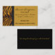 Bel or et carte de visite noir, avec une copie de tigre du côté gauche de la carte, avec un bord tressé noir. La région des textes est une brune d'or et est personnalisable pour être n'importe quelle couleur que vous voulez. Personnaliser pour adapter à vos besoins d'affaires.