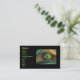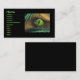 Carte de visite avec mon image d'un oeil de raptor vert avec des reflets de palmiers, en regardant à travers les branches de palmiers.