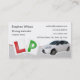 Cartes de visite d'instructeur d'entraînement avec une image d'une voiture, et d'étudiant et icônes passées. Texture en cuir au fond