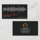 Une couverture gris foncé est accentuée par un motif sonore à ondes sonores. Près de la base de la carte se trouve votre nom prestigieux en rouge à côté du titre de l'emploi et une option de slogan pour faire connaître vos services près du côté droit de la carte ; Changez la légende en slogan pour qu'elle corresponde à vos besoins en services.