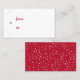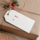 Dites adieu aux étiquettes traditionnelles et économisez de l'argent cette saison des fêtes. Nos étiquettes cadeaux Cartes de visite sont fournies avec des lignes de coupe préimprimées et des marqueurs de trous pour une utilisation sans tracas. Coupez simplement le long des lignes et pointez facilement le trou. Notre design festif présente un message intemporel "De à" dans un style calligraphique élégant, orné d'une riche couleur rouge foncé contre un motif blanc classique. Sur le dos du tag, un joyeux motif blanc pointillé sur un arrière - plan rouge vif ajoute une touche de joie à vos cadeaux. Économique et chic, nos étiquettes cadeaux sont la solution parfaite pour étiqueter de nombreux cadeaux tout en économisant de l'argent pendant cette période de Noël. Faites ressortir vos cadeaux et diffusez la joie des fêtes ! Commandez les vôtres dès aujourd'hui ! VEUILLEZ NOTER : Les coupes sont simulées dans l'illustration. L'oeuvre sera imprimée comme indiqué et ne contiendra aucun trou ni aucune fente. Utilisez simplement un poinçon pour créer le trou et les ciseaux pour découper les lignes et vous êtes tous prêts.