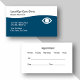 Soins oculaires Ophtalmologiste rendez-vous cartes de visite avec logo oeil que vous pouvez remplacer ou laisser en place. Une combinaison de rappel de rendez-vous et de carte de visite dans une mise en page simple et moderne vous pouvez customiser en ligne.