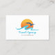 Modèle personnalisable de carte de visite pour une agence de voyages, l'agent de voyage, l'organisateur de voyages ou d'autres services connexes par tourisme comportant une mer logo générique ondulent, des soleils et de mouette, bleu et orange.