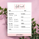 Restez organisé avec ce formulaire de liste de contrôle client moderne, parfait pour enregistrer vos clients des préférences d'extensions de contours et des détails de rendez-vous, Ce faux eyelashes caractéristiques de formulaire client, design rose et blanc avec espace pour le type d'extensions de contours, longueur, curl etc. ainsi que votre nom client et la date de rendez-vous. Ajoutez votre logo lash et les coordonnées du salon au dos et faites votre formulaire personnalisé de liste de contrôle client pour votre salon de beauté.