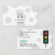 Des cartes de visite professionnels modernes à double face conçus pour une école de conduite. L'avant dispose d'une voiture dessinée à la main, le nom commercial, l'adresse et le numéro de téléphone . Le côté arrière est équipé d'un feu de signalisation et de toutes les informations importantes que vos clients doivent connaître. Les deux côtés ont un arrière - plan blanc avec des pois gris clair. © ArianeC Illustrations-Tous droits réservés Avertissement : Tous les noms et numéros sont fictifs et servent d'exemple seulement.
