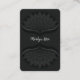Ce carte de visite vraiment unique est un design élégant avec des éléments de design ornemental et votre nom professionnel ou nom d'entreprise figurant sur le devant. Un design modifiable que vous pouvez customiser en ligne pour toute entreprise ou profession. Présenté sur un beau stock carte de visite d'angle arrondi.
