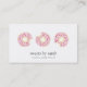 Le design mignon et fantaisiste des boulangers, des décorateurs de gâteaux ou des professionnels de la boulangerie présente un trio d'illustrations de beignet saupoudré de rose pastel. Personnalisez avec deux lignes de texte personnalisé sur le devant, et ajoutez vos coordonnées complètes au verso. Ce design est également disponible en formats vertical et carré !