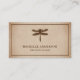 carte de visite élégant avec une belle illustration de libellule sur un arrière - plan rustique en burlap. Ajoutez votre nom et vos coordonnées pour faire une première impression durable.
