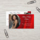 Faites une impression inoubliable et brille comme une étoile avec des cartes de visite photo personnalisés en rubis élégant brillant. Ce carte de visite personnalisable dispose d'espace pour placer vos photos sur le devant et le dos avec votre nom, titre de concours, plate-forme, citation personnelle ou message, et adresse web ou URL de médias sociaux.