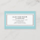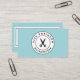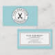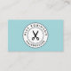 Carte de visite moderne rétro avec un logo circulaire noir et blanc sur le devant sur un arrière - plan bleu. La couleur de l'arrière - plan peut être changée en n'importe quoi qui correspond à votre entreprise. Ce serait parfait pour un coiffeur, un salon de coiffure ou un coiffeur car le logo comporte une paire de ciseaux. Il conviendra également à un couturier, tailleur ou toute autre personne qui travaille avec des ciseaux.