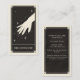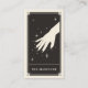 Ce carte de visite est décoré dans un style de carte tarot dans une palette de couleurs noir et crème. L'illustration montre une main manucurée entourée d'étoiles scintillantes. Ce serait parfait pour n'importe quel technicien Nail, salon d'ongles ou esthéticienne qui préfère un carte de visite de style alternatif et veut rendre leur carte de visite mémorable.