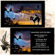 Carte de visite d'Halloween avec une jolie illustration d'un chat, une sorcière et une chouette dans un arbre sous une pleine lune. Ce carte de visite peut être utilisé comme billet pour une fête d'Halloween ou une invitation pour une fête ainsi que pour d'autres usages liés à Halloween.