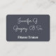 Ce carte de visite propre, minimaliste et personnalisable présente un arrière - plan gris foncé. Il pourrait être utilisé par un professionnel comme un entraîneur de conditionnement physique, un conseiller en conditionnement physique, un entraîneur d'exercice ou un entraîneur de force. Le nom, la profession et les coordonnées peuvent être personnalisés.