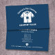 A blue business card for a dyeing and dry cleaning shop or service with an illustration of a shirt with a stain. Perfect for all activities of ironing, laundry, dry cleaning, launderette, laundry care, clothing washing, etc.