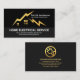 Sur le dessus, dans une couverture grise, le logo de la prise d'alimentation en or que vous pouvez utiliser est en haut. Il est suivi par votre nom prestigieux, les coordonnées et une option de slogan pour faire connaître vos services. Les lettres ici sont en faux or.
