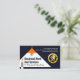 Une bougie dans l'obscurité est éclairée par une lampe aérienne à laquelle vous avez restauré l'électricité. À l'intérieur du faisceau lumineux se trouve votre nom d'entreprise et une légende de slogan que vous pouvez changer. En haut, vous trouverez les coordonnées avec un logo de jauge d'alimentation en or que vous pouvez utiliser. En haut se trouve le logo or, suivi de votre nom prestigieux, de vos coordonnées et de votre option de slogan pour faire connaître votre entreprise. Il s'agit d'une excellente carte créative pour les électriciens.