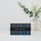 Modèle de regard majestueux de carte de visite, fait dans un plaid de tartan écossais coloré traditionnel, du clan de MacDonald. Une rayure noire solide au-dessus du plaid bleu et vert, a le texte coloré par blanc. Du verso est un secteur des textes et un accent noirs de plaid, au dessus. Personnalisez tout le texte pour adapter à vos besoins.