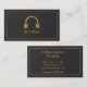 Un carte de visite de regard élégant, de luxe et chic en or de faux au-dessus d'un arrière - plan noir grisâtre de texture. Il comporte une conception de silhouette d'une paire d'écouteurs avec une frontière simple à travers le carte de visite. Personnalisez facilement avec le texte cursif. Grand pour des jockeys et ceux de disque dans l'industrie musicale.
