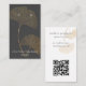 La carte d'affichage moderne d'oreille comporte une illustration en or de feuille de gingko sur un arrière - plan gris foncé avec du texte contemporain blanc sur le devant, et du texte gris avec du code QR personnalisable pour votre site Web ou les médias sociaux sur le dos.