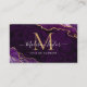 Élégant moderne chic violet violet or Parties scintillant marbre Agate Monogramme Carte de visite