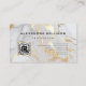 Carte De Visite Élégant Ciseaux Code QR Marbre Or Blanc Moderne