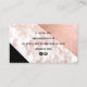 carte de visite géométrique élégant avec faux rose or, marbre, bloc de parties scintillant et de couleur arrière, ciseaux, police calligraphie élégante.