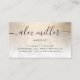 Design carte de visite moderne de coiffure avec dégradé faux cuivre or et texture de marbre blanc, ciseaux et élégante police calligraphie. Personnalisez le produit avec votre nom et vos détails.