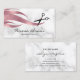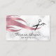 Belle coiffure design carte de visite avec cheveux rose rose or faux texture métallique, ciseaux, blanc marbre arrière - plan et élégante police calligraphie.