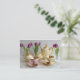 Beau carte de visite comportant notre image colorée d'ensemble de café vintage et de tulipes pourpres vibrantes. Utilisation de créer les chèques-cadeau promotionnels. Grand pour des café-restaurants, thé fait des emplettes, les planificateurs de partie, lieu de rendez-vous de thé d'après-midi.