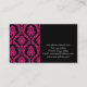 Carte de visite avec la conception rose et noire de damassé. Cette carte est prête pour la personnalisation avec votre information d'affaires. Tout le texte peut être modifié - changez le style, couleurs, tailles, ajoutez ou enlevez les gisements des textes pour adapter à vos besoins. Si vous avez besoin de n'importe quelle aide svp envoyer Kirsty sur kirsty_pargeter@yahoo.co.uk