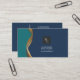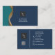 Carte De Visite Elegant Gold Wave Blue Logo Turquoise Code QR