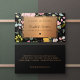Carte de visite professionnelle chic et fillette en verre avec un motif de pré fleur sauvage chic et un étiquette rectangle en laiton or en cuivre sur un arrière - plan noir moody. +++++++++++++++++++ Personnalisez-le avec vos détails des deux côtés ! +++++++++++++++++++++++++++ Parfait pour la maison designer d'intérieur, directeur ou propriétaire de salon de beauté, coiffeur, maquilleur, styliste de mode | décorateur | concepteur | architecte | chef | blogger sur le mode de vie.