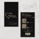 Carte De Visite Elégant noir & or brillant coeur QR Code Merci