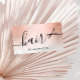 Design carte de visite moderne de coiffure avec dégradé faux cuivre rose or et texture de marbre blanc, ciseaux et élégante police calligraphie. Personnalisez le produit avec votre nom et vos détails.