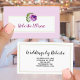 Ce design avant carte de visite professionnel dispose d'un arrière - plan lilas avec un rose d'aquarelle violet et verdoyant au-dessus d'une boîte de rangement pour votre nom. Personnalisez le texte à l'avant et à l'arrière ou cliquez sur personnaliser pour sélectionner un style, une taille ou une couleur de type que vous souhaitez. Le dos contient le nom et les informations de l'entreprise. Personnalisez les champs de texte, supprimez tout texte ou cliquez sur personnaliser pour sélectionner un style, une taille et une couleur de type que vous souhaitez.