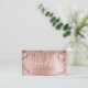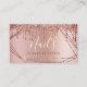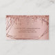 Ce superbe design carte de visite de technicien d'ongles dispose de faux rose de cuivre or goutte parties scintillant texture métallique, cadre et élégante police calligraphie.