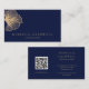 Carte De Visite Élégant Royal Blue Floral QR Code