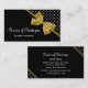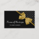 Cartes de visite de boutique en or et noir élégant avec pois noirs et blancs modernes et un élégant ruban d'or attaché dans un arc chic. Ces cartes de visite de qualité, mais abordables, sont sûrs d'attirer de nouveaux clients et clients à votre boutique de beauté ou salon professionnel. Image imprimée plate, pas l'arc réel.