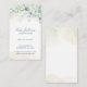Elégant carte de visite vertical avec une bordure supérieure de feuilles d'eucalyptus et de verdure avec une pointe de bleu, sur un lavage pastel aquarelle. Votre nom est dans un script vert foncé et vos coordonnées sont dans une police serif. Ce design simple et rustique est idéal pour un jardinier ou un professionnel du paysage.