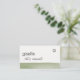 Ce design carte de visite minimaliste présente un trait d'aquarelle vert sauge doux sur le fond pour une esthétique apaisante d'inspiration nature. Associée à une combinaison de polices serif et script propre et à un code QR intégré, cette carte offre une solution moderne, fonctionnelle et élégante pour les professionnels créatifs et les marques de bien-être. Entièrement personnalisable avec votre nom, titre, coordonnées et code QR scannable — il est parfait pour les services de boutique, les boutiques artisanales ou toute personne à la recherche d'un look de luxe tranquille. Une disposition simple et intentionnelle avec des couleurs naturelles douces rend ce design à la fois polyvalent et intemporel.
