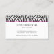 Carte De Visite Elegant Zebra Print Pink Black White Custom