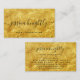 Élégante Calligraphie Script Swash Black Gold Texture Carte de visite. Carte de visite professionnel élégant et élégant avec nom de script de calligraphie sophistiqué avec des swashes en noir sur un arrière - plan de texture or). MODIFICATIONS : Modifiez le style, la couleur, la taille et le placement de la police de texte dans EDIT. ASSISTANCE : Pour obtenir de l'aide sur la modification de la conception, le transfert de la conception à un autre produit ou si vous souhaitez coordonner des éléments, contactez le concepteur AVANT DE COMMANDER via l'onglet MESSAGE Conversation Zazzle ou envoyez un courriel à makeitaboutyoustore@gmail.com.