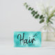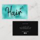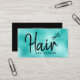 Ce design carte de visite de coiffure moderne comprend des ciseaux, arrière - plan de texture métallique bleu imitation menthe et police calligraphie élégante.