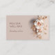 Ce carte de visite professionnel unique dispose d'une fleur blanche tridimensionnelle avec des feuilles en or rose métallique et des ombres. Elégant design de luxe pour maquilleurs, spas, wedding planners, planificateurs d'évènements, cosmétologues, salon de beauté... avec un code qr scannable à l'arrière.