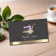Carte de visite styliste professionnel de mode avec une belle machine à coudre avec des fleurs et une élégante bande d'or sur arrière - plans gris. Ajoutez votre nom et vos coordonnées pour faire une première impression durable.