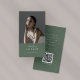 Ce carte de visite photo moderne simple et rustique Boho vert sauge de la collection Emelia est parfait pour un propriétaire de petite entreprise, consultant, styliste et plus encore! Le design vert sauge foncé présente une typographie rustique et simple avec une atmosphère de montagne boisée. Personnalisez votre carte de visite avec votre photo et un code QR.