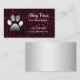 Empreinte de léopard de Bourgogne et Carte de visite de service de toilettage pour animaux de compagnie de chien d'argent.