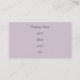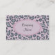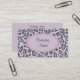 Un empreinte de léopard lavande et gris orne l'avant de ce carte de visite de style rétro. Utilisez ce carte de visite pour une boulangerie, boutique, boutique, restaurant, traiteur, salon, coiffeur, salon de coiffure, enseignant, designer, décorateur, salon de beauté, maquilleur, etc...Customisez la carte selon vos besoins. Les motifs sont issus de l'art original.