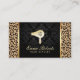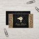 Cartes de visite modernes d'empreinte de léopard de logo de dessiccateur de coup d'or de coiffeur.