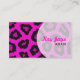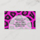 Carte de visite avec design empreinte de léopard rose. Cette carte est prête pour la personnalisation avec vos informations professionnelles. Tout le texte peut être modifié : modifiez le style, les couleurs, les tailles, ajoutez ou supprimez des champs de texte selon vos besoins. Si vous avez besoin d'aide, envoyez un courriel à Kirsty sur kirsty_pargeter@yahoo.co.uk